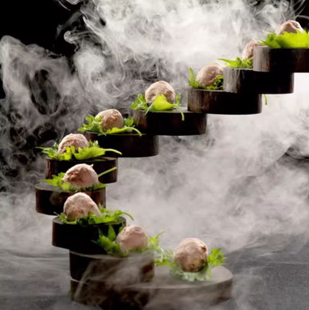 Hiệu ứng khói khô băng cực kỳ bắt mắt (nếu kết hợp trình diễn món nóng/lẩu).