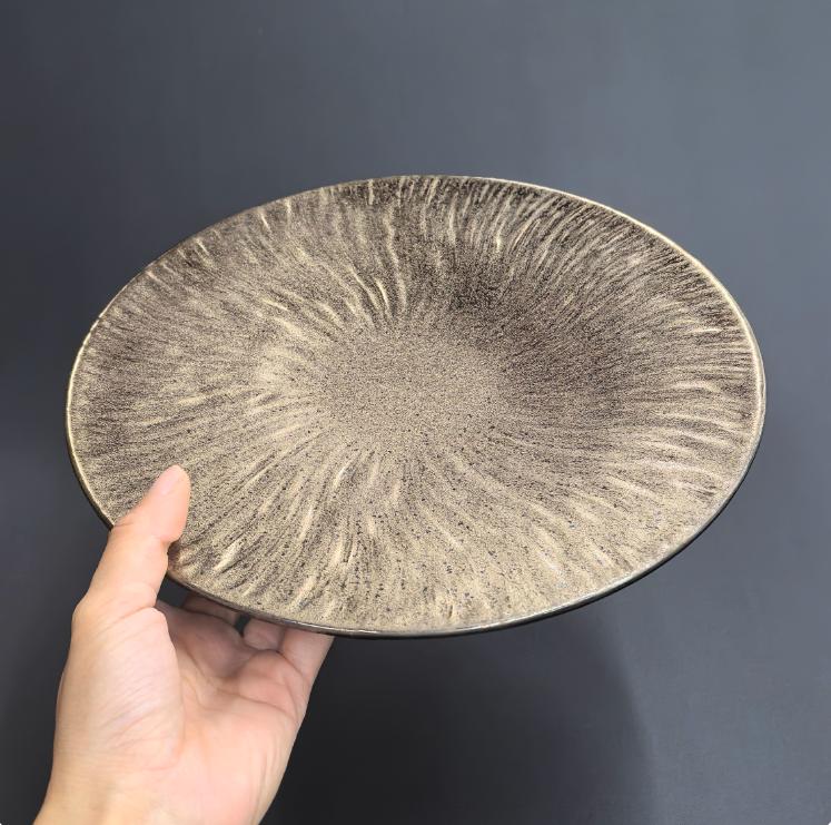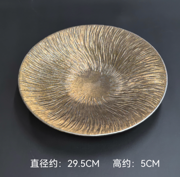 Hiệu ứng ánh kim đặc biệt: Khi đặt dưới ánh đèn, bề mặt gốm phản chiếu ánh vàng tinh tế, mang lại cảm giác cao cấp cho bàn tiệc.