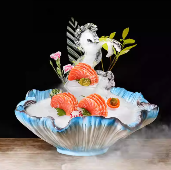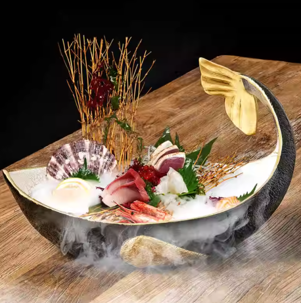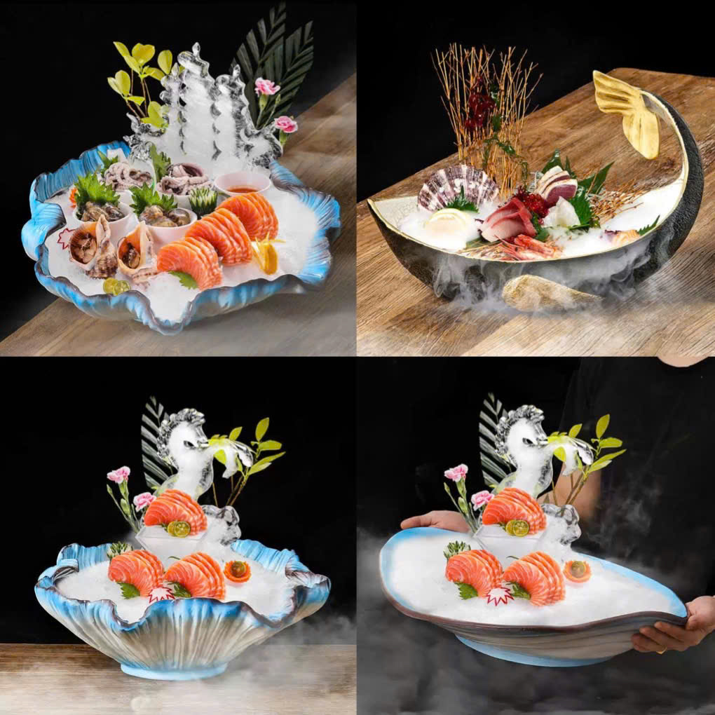 Mang hơi thở của nghệ thuật ẩm thực Nhật, đĩa sashimi trang trí khói lạnh là lựa chọn hoàn hảo cho nhà hàng Nhật, quán sushi – sashimi cao cấp và những ai yêu thích phong cách trình bày tinh tế.