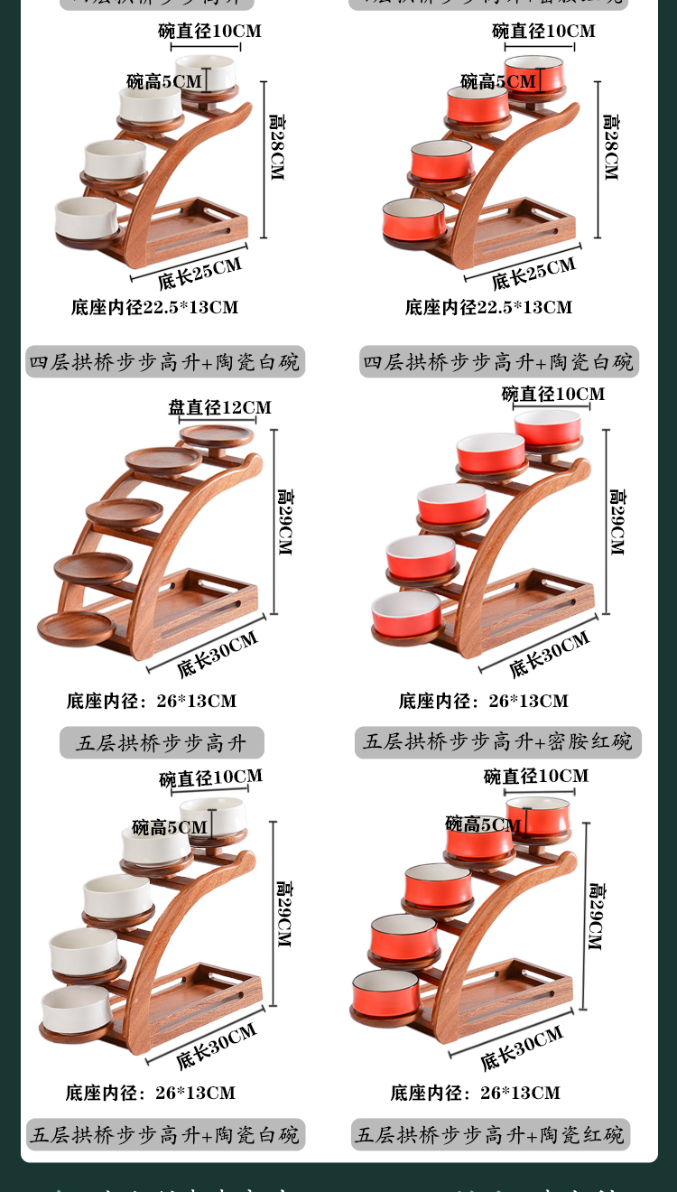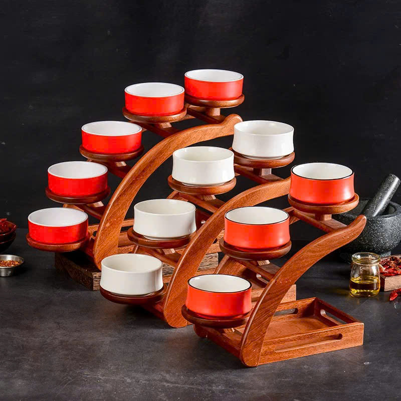 Có nhiều lựa chọn: 3, 4, 5 tầng – kèm bát sứ trắng hoặc đỏ nổi bật.